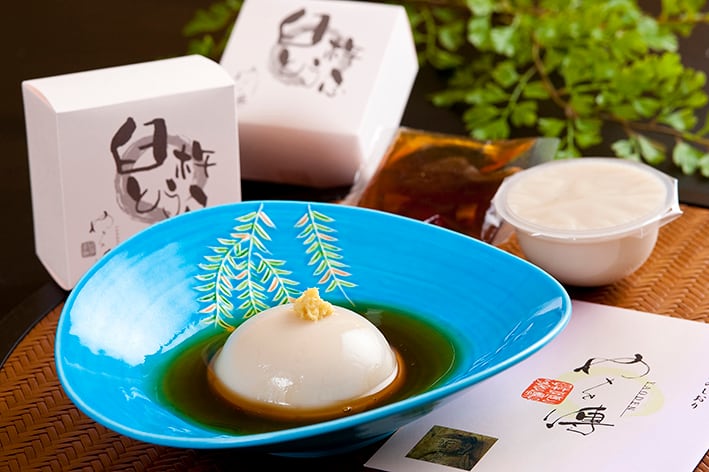 臼杵市特産の椎茸の出汁で作った”みたらしタレ”で供する臼杵独特のごま豆腐です。